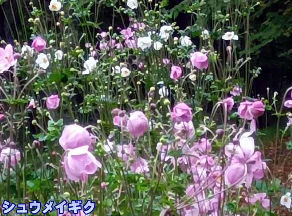 イワシャジン・ダイモンジソウ・フジバカマ・トウテイラン・金華山コハマギク・ハマギク・ホトトギス・ヒツジグサ・シュウメイギク・シオン等が開花してます。キイジョウロウホトトギス・スイレン・ベニコウホネの姿が少し見られます。 |